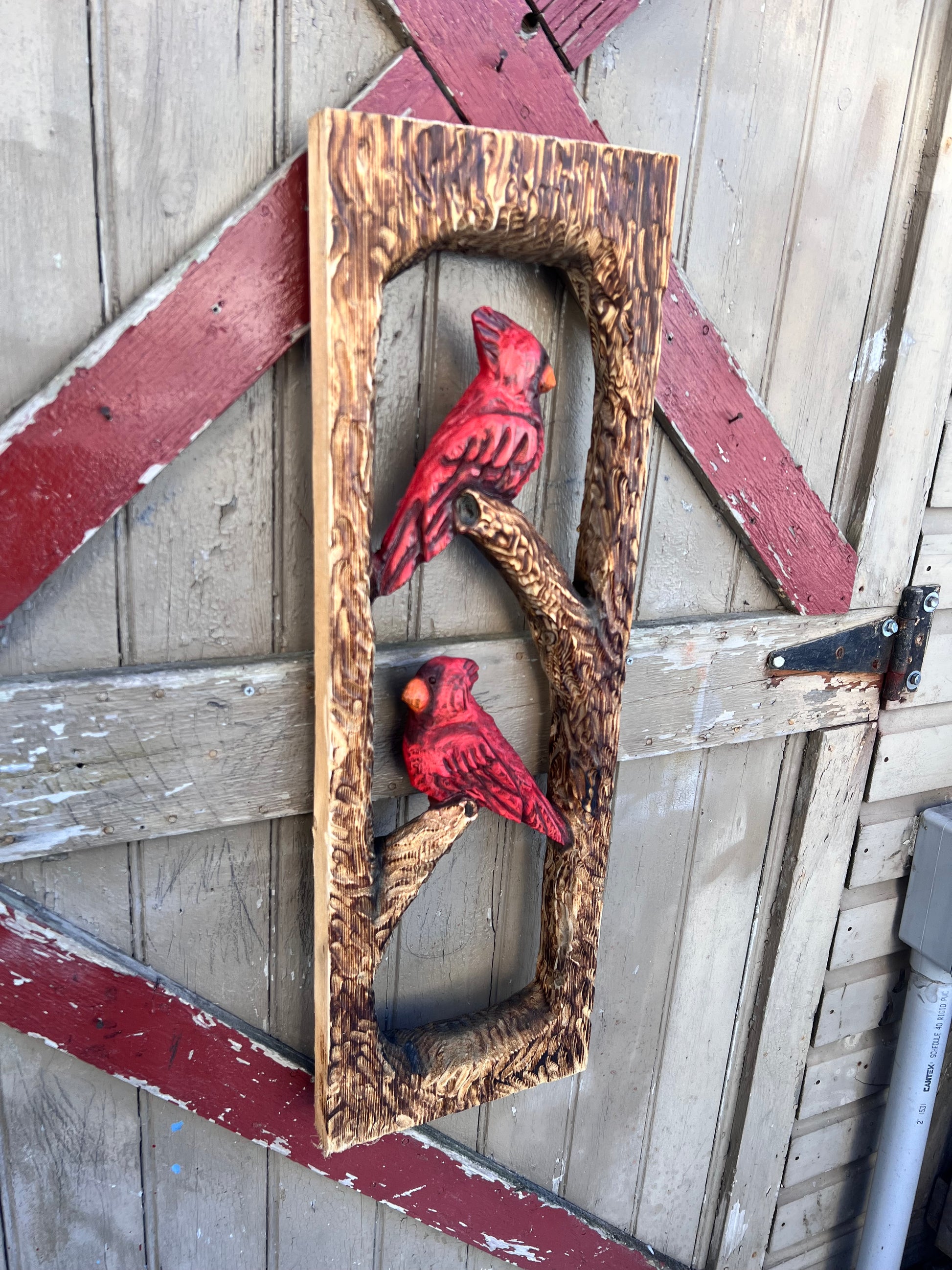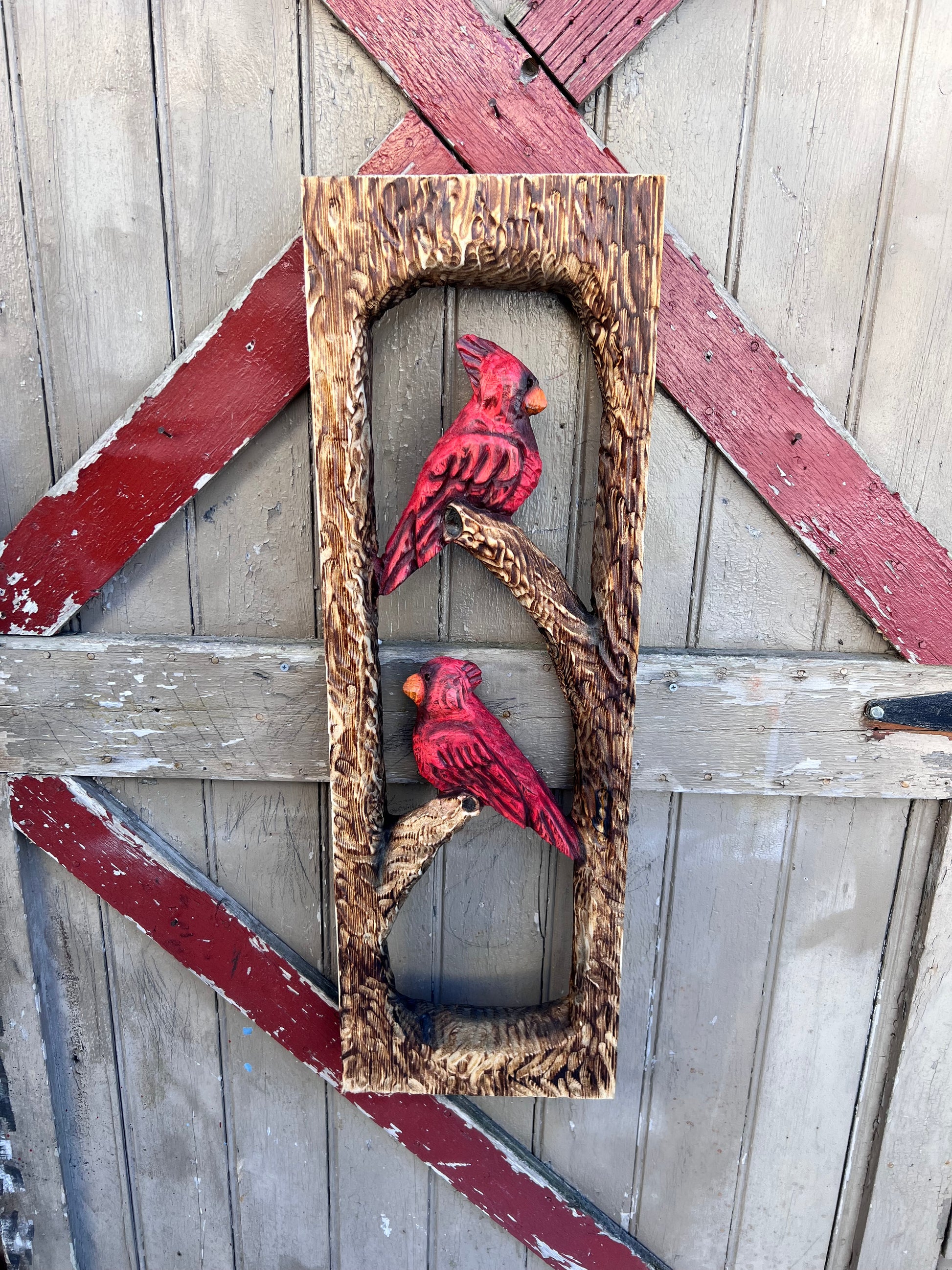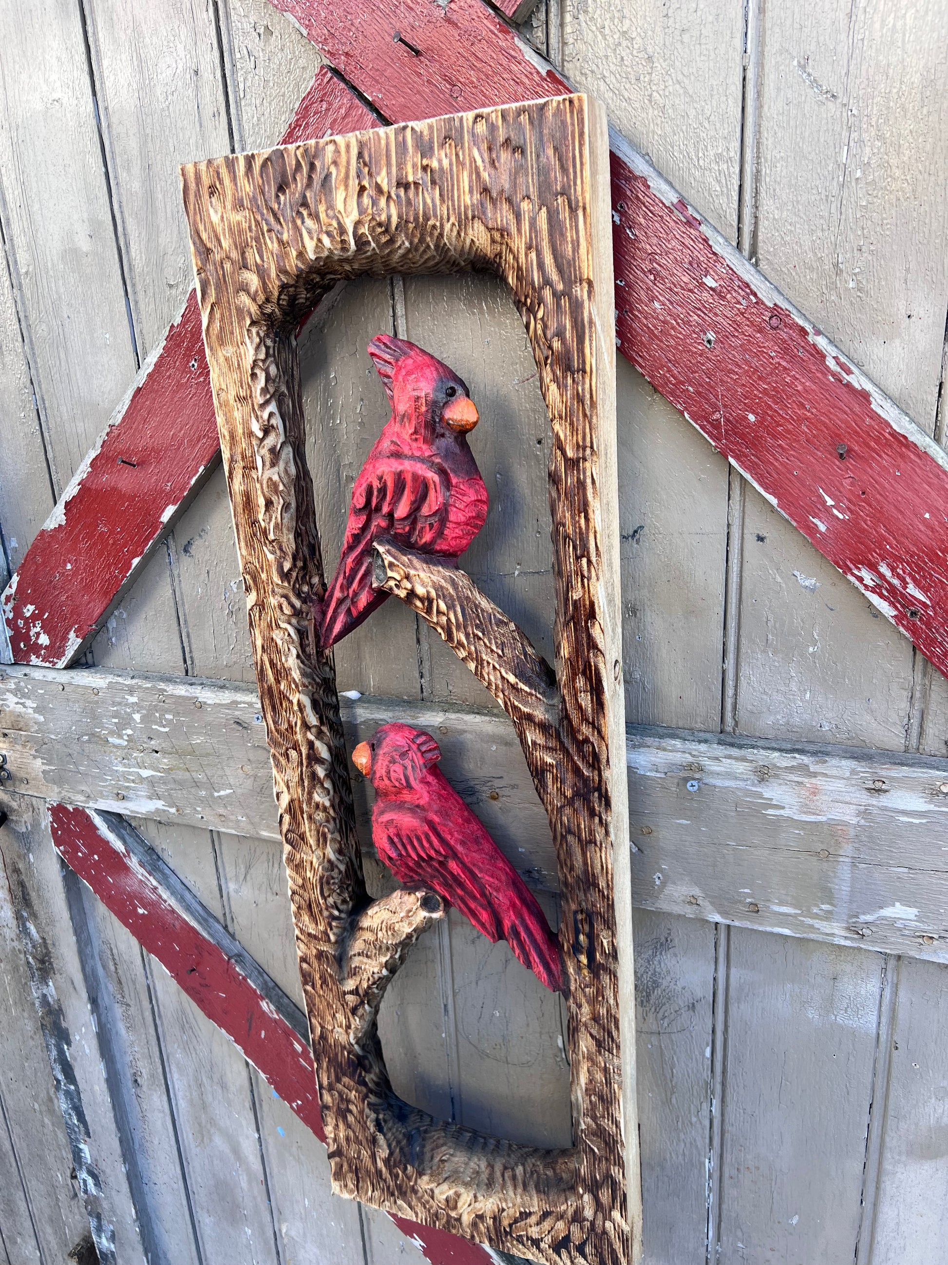 This lovely wall decor is intricately carved with chainsaws from a 2x12x36 inch pine board. After the chainsaw work, fine details are added using power carving tools. A final touch of depth is achieved through airbrushing with an array of colors. For long-lasting durability, this piece is coated with two layers of exterior polyurethane. Adding additional coats may be necessary for pieces exposed to harsh elements. To preserve the vibrant colors, it is recommended to keep this piece away from direct sunlight.